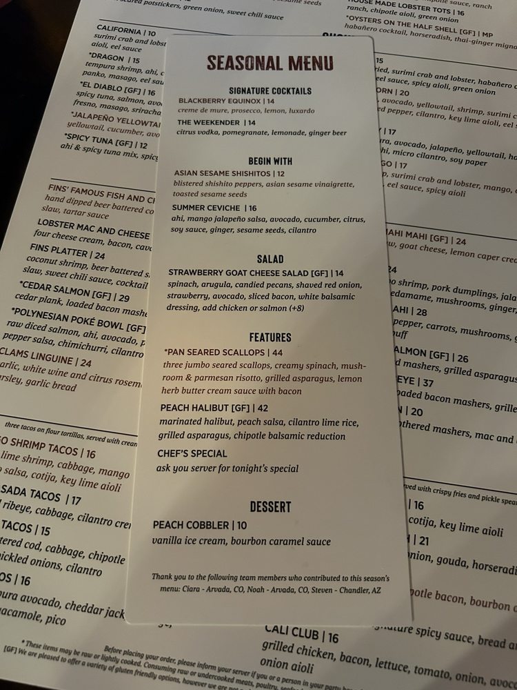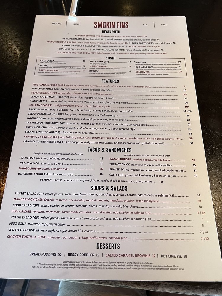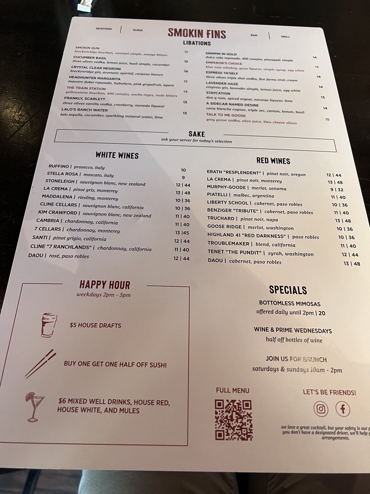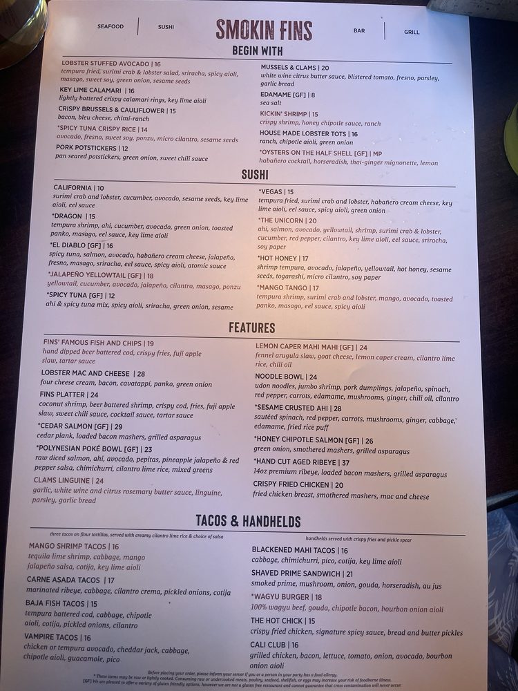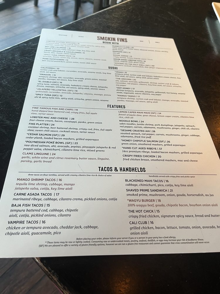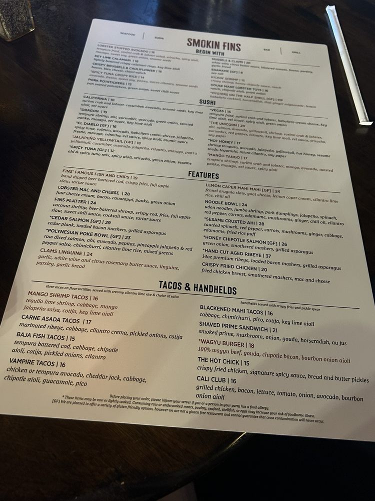 Introducing Smokin Fins, a New American restaurant in Chandler, AZ, offering a diverse menu of seafood, sushi, and tacos. Known for its casual yet classy ambiance, this restaurant provides a range of options for customers, from crispy coconut shrimp to blackened Mahi tacos. The menu highlights include the Key Lime Calamari, Lobster Stuffed Avocado, and Glazed Pork Belly. Customers praise the friendly service and delicious dishes, with favorites like the spicy tuna crispy rice and the calamari receiving rave reviews. With two outdoor seating patios, Smokin Fins provides a great dining experience for solo diners, couples, or groups of friends. Don't miss out on trying their flavorful cocktails and sushi rolls, making it a must-visit spot for seafood lovers in the area.